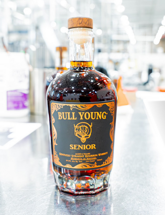 Bull Young Senior Bourbon features a mash bill of 75% corn, 21% rye, and 4% malted barley, creating a balanced profile with sweetness, spice, and depth. ​