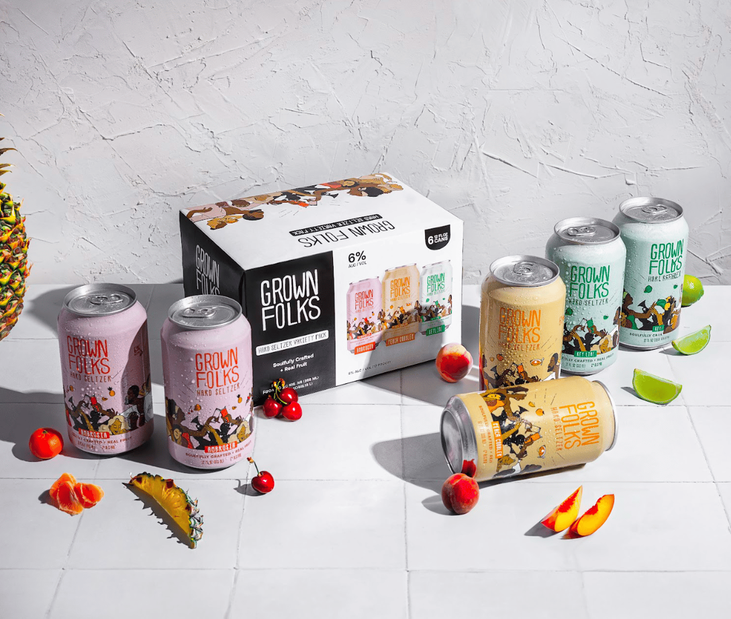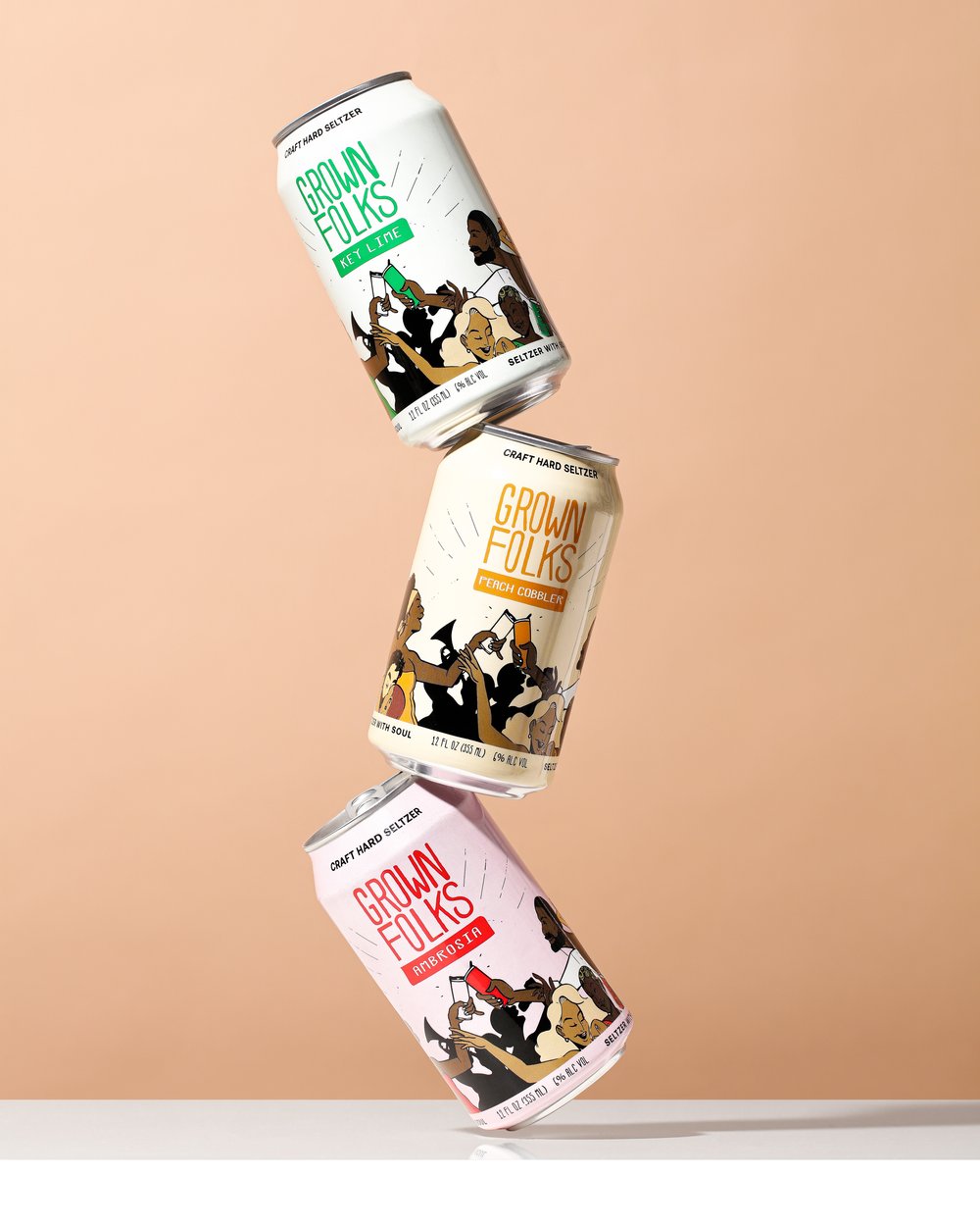 Blending Louisiana Creole heritage and soul‑food nostalgia into a modern beverage, Grown Folks Hard Seltzer was created by Black, female entrepreneur Danica Dias. With a 6% ABV and real fruit juice, these ready-to-drink seltzers evoke the warmth of family gatherings. Each can showcases playful, flavor-packed designs and delivers a taste that’s sweet, tart, and refreshingly fun. Perfect for the front porch or any grown‑folk affair.