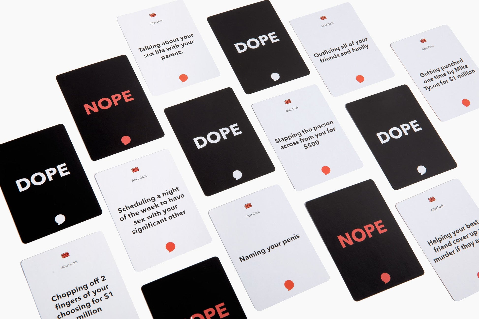 That’s Dope: After Dark Edition is the perfect adult party game for any group with strong opinions and the rules are simple! Each round players take turns guessing who voted “Dope” or “Nope” to hilarious, controversial, Rated R topics. Find out how well you know your friends.. or make some new ones.