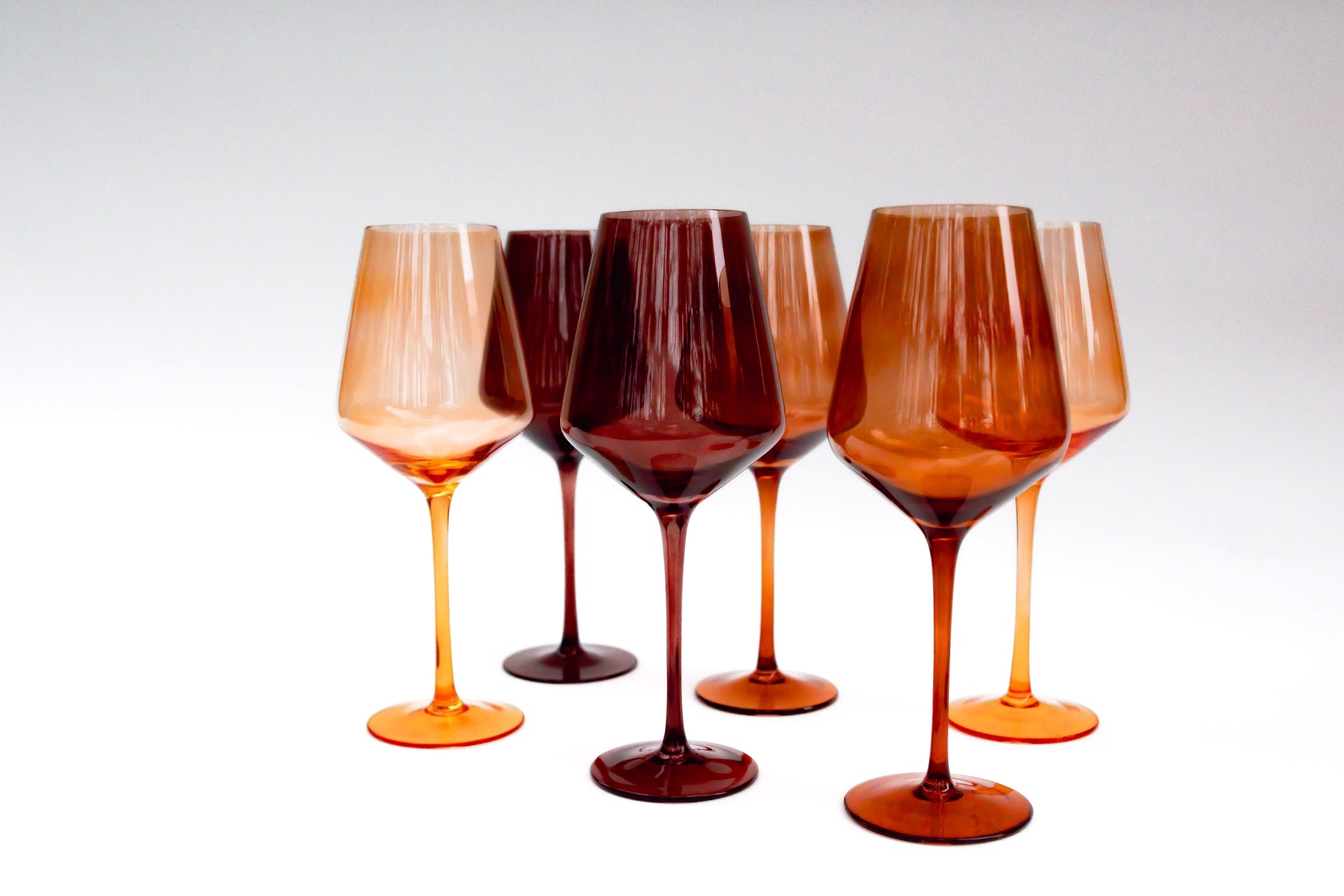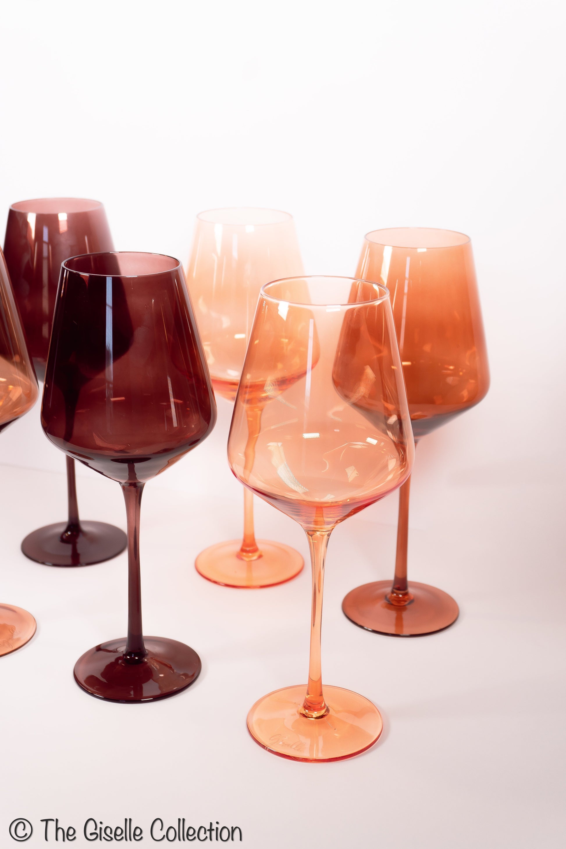 The Giselle Collection – Set of 6 Nude-Toned Wine Glasses in Caramel Blush, Silk Brandy Brown & Chocolate