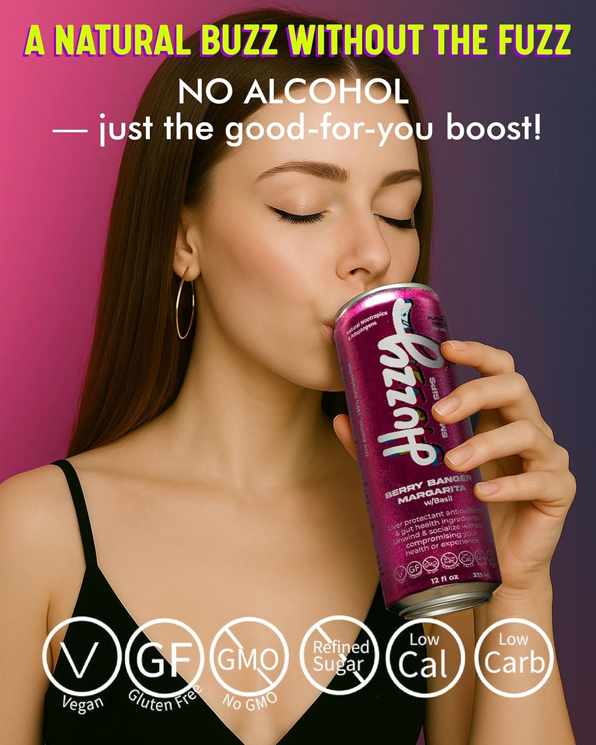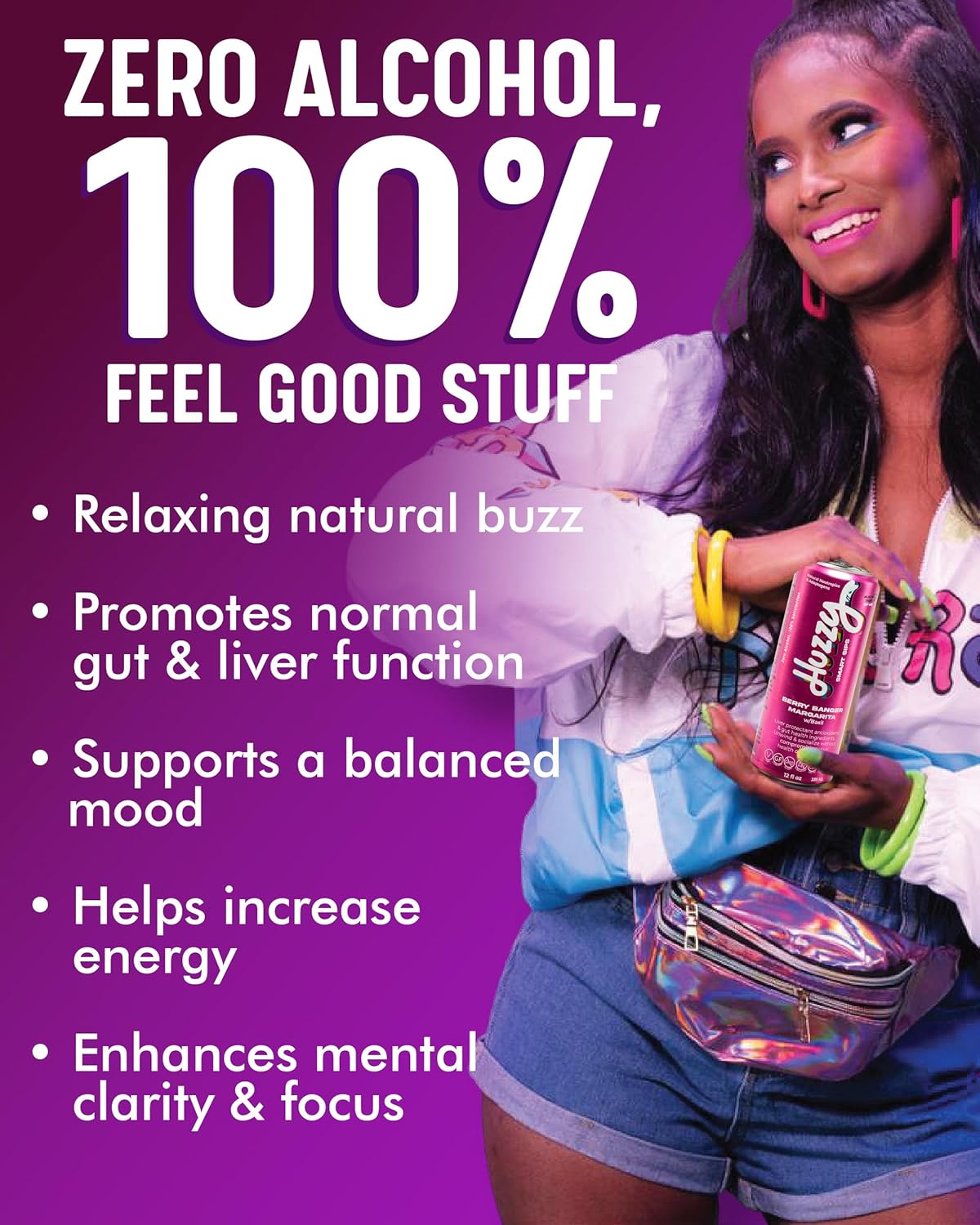 Huzzy Smart Sips Berry Banger delivers a vibrant, alcohol-free take on the classic margarita experience. This berry-forward functional beverage blends juicy fruit flavor with bright citrus notes, creating a refreshing drink that feels celebratory without the alcohol. Crafted for modern, mindful drinkers, it offers the social vibe of a cocktail while keeping things clean and balanced. With no refined sugar, caffeine, or artificial colors, Berry Banger is designed for easy sipping whether you’re relaxing at home, hosting friends, or looking for a flavorful alternative to traditional cocktails.